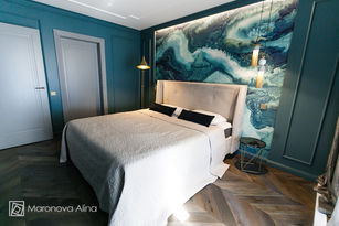 The client's favorite colors - blue and emerald - formed the basis of accents in the apartment.